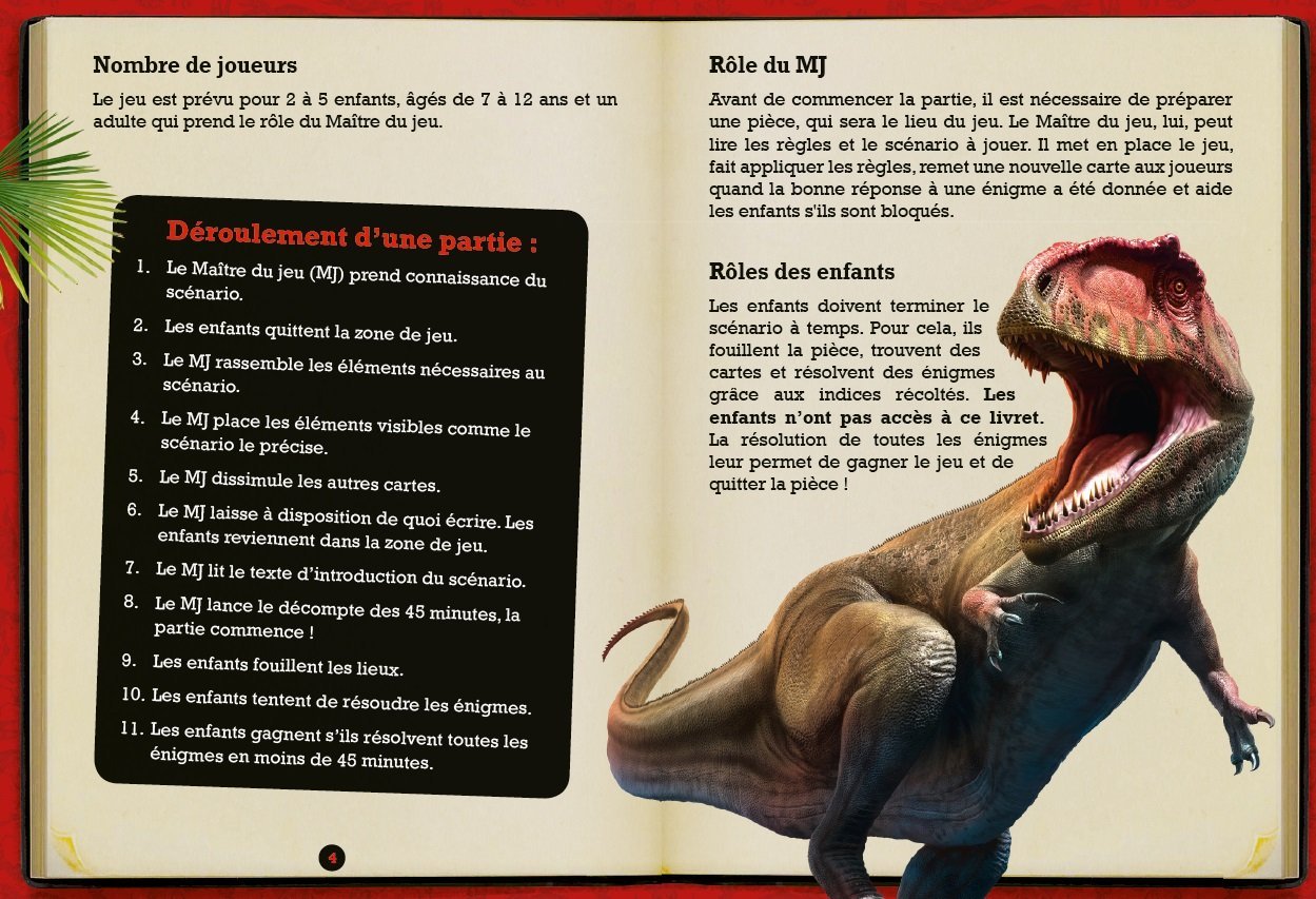 Embarquez pour une fabuleuse aventure au milieu des dinosaures ! Le professeur Flynn, un célèbre géologue, a disparu ! Pour le retrouver, vous descendez dans un monde souterrain étrange, peuplé d’une jungle épaisse et… de dinosaures ! Vous avez 45 minutes pour résoudre les énigmes et sauver le professeur. Le temps presse, saurez-vous éviter les monstres carnivores ?