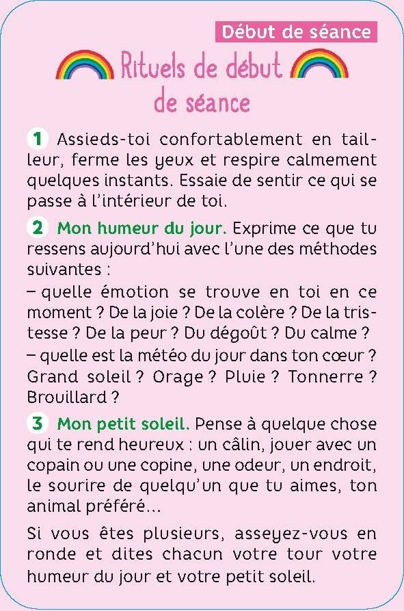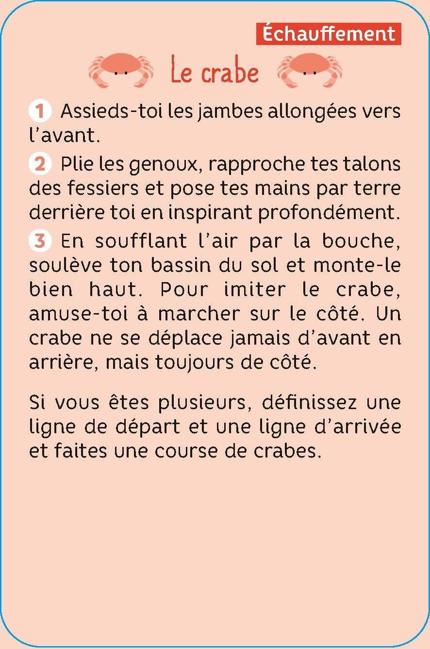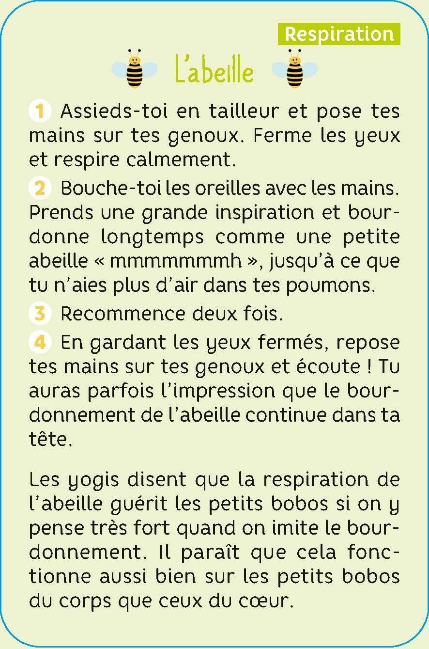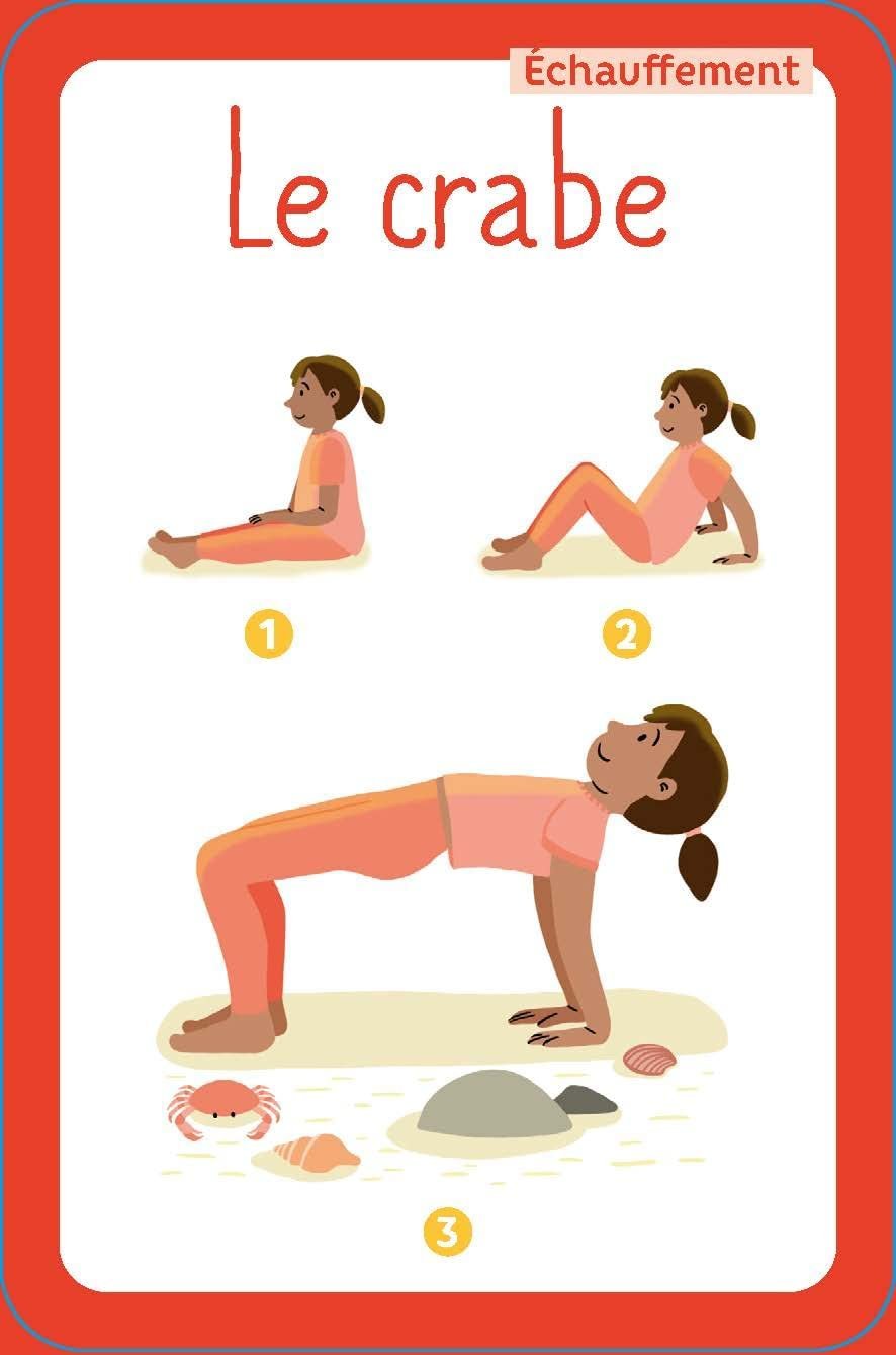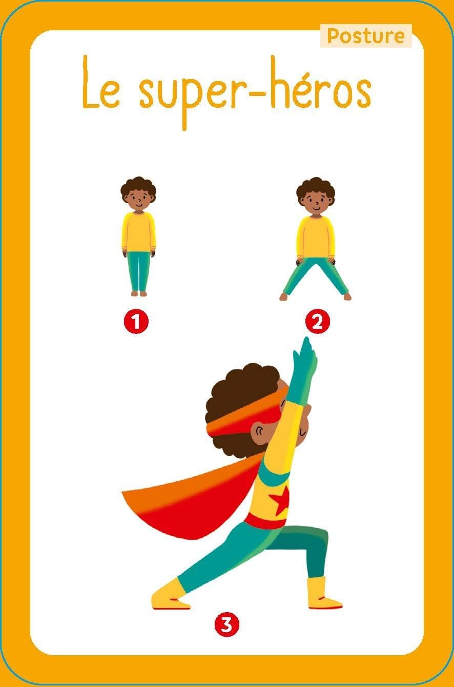 - Dans la collection “Récré en boîte”, Le yoga par le jeu est un jeu de cartes qui permet à l’enfant de créer ses propres séances de yoga. Les cartes sont réparties en six catégories : rituel de début de séance, échauffement, postures, exercice de respiration, exercice de relaxation et, enfin, un moment de méditation.