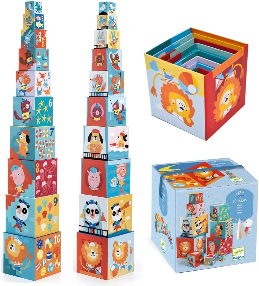 - An artistic take on a classic developmental toy, let’s go to the beach and play in the sand, count to 10; nest the blocks or make a tower